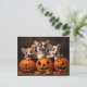 Cartão Postal Cachorros de Halloween com Cartaz de Abóbora