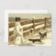 Cartão Postal Cachorros se encontram com boneco de neve na cerca