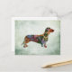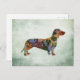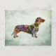 Cachorro Dachshund com um perfil de design floral shabby sobre um fundo verde pintado texturizado. Um presente adorável para um dono de estimação.