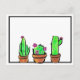 Uma ilustração de três cactos bonitos com flores cor-de-rosa em pequenos potes de terracota.