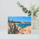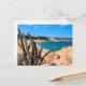 Cartão Postal Cactus Em Rocky Hilltop Sobre Sandy Beach