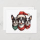 Uma bela ilustração dos cães de Boston Terrier vestidos para o Natal. Perfeito para amantes de animais de estimação e pais de cães durante o feriado.