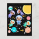 Cartão Postal Cães Fofos no Espaço Acariciam Astronautas