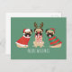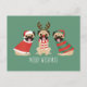 Óptica ilustração de três cachorros-pug vestidos em trajes de Natal.