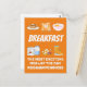 Este é um design de café da manhã que eu fiz. Coloquei panquecas, torrada francesa, aveia, leite e cereais, bacon e ovos, suco de laranja. O texto diz café da manhã a refeição mais excitante do dia. #somanyoptions.