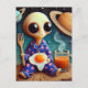 Uma Alienígena engraçada vestida de PJs com café e ovo no café da manhã arte gerada por IA adorável