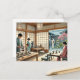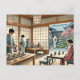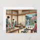 Perfeito para o café e amante de viagem. A pintura aquarela retrata lindamente a atmosfera serena e harmoniosa de um compro tranquilo de café em Kyoto. Os painéis de madeira quente e as telas shoji difundem suavemente a luz do sol no espaço, criando um brilho convidativo. Mesas de madeira baixas com almofadas tatami acrescentam um toque tradicional, enquanto as elegantes instalações de luz preta fornecem um contraste moderno. Uma barista em um avental de linho prepara graciosamente café para derramar, ascensão a vapor delicadamente no calmo. Uma mulher em um quimono azul claro gosta de um café com leite mate, e um casal próximo compartilha doces wagashi, suas expressões vivas adicionando calor. Além das grandes portas deslizantes, um pequeno jardim dúbio com pedras de mesquita e uma cerejeira florescente em flores de cheio trazem tonalidades rosas vibrantes, complementando o bege neutro e tons castanhos do interior. A cena captura a perfeita mistura de tradição e modernidade de Kyoto.