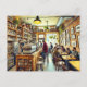 A pintura aquosa mostra o interior de um pequeno compro de café amassado em Vancouver. O espaço está bem repleto de mesas de madeira e cadeiras inigualáveis, criando uma atmosfera movimentada mas acolhedora. As paredes de tijolos expostas são enfeitadas com fotografias enquadradas e pequenas plantas encapotadas, acrescentando um toque pessoal e rústico. O contador compacto, feito a partir de madeira recuperada, apresenta frascos de pastelaria e uma máquina de café expresso. Uma barista de camisa de xadrez está ocupada servindo uma linha de clientes, enquanto os patrões se sentam lado a lado, bebendo café ou trabalhando em laptop. A iluminação amarela quente e algumas listras de luz natural de uma pequena janela melhoram o encanto íntimo deste café vivo