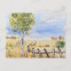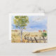 Uma bela cena de outono neste cartão postal, ou impressão de arte pequena. Um pássaro num campo com gansos, gruas de sanduíche e um corvo na cerca.