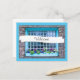 Anuncie uma abertura, grande abertura ou, seja como for, este postal funciona para você. O design cobrir é adornado com uma fotografia de uma janela multibloco azul num edifício de pedra. O quadro da janela inclui uma caixa de flores azuis correspondente com flores roxas, brancas e azuis para uma abertura de cor. Clique em limpar para remover a faixa branca. Em Personalizar, preencha o campo modelo com suas palavras para o texto frontal e/ou clique em Personalizá-lo! para selecionar um tamanho de estilo de fonte e uma cor que você prefere. Ao personalizar, você também pode adicionar texto ao cartão-postal.