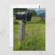 Uma caixa de correio de metal antiga em um posto de madeira, em um cenário rural onde há um RR# anexado ao endereço! Felicite novos proprietários, comemore uma nova casa com uma festa de inauguração ou anuncie uma mudança de endereço com este design de caixa de correio totalmente personalizável.
