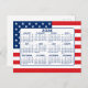 Cartão Postal Calendário com Bandeira Americana - Vermelho Branc