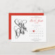 Este lindo cartão de data de salvamento de 40º aniversário apresenta um calendário e um lindo coração de amor rubi destacando sua data especial. O verso apresenta confetes de coração de rubi. Criado por Thisisnotme©