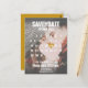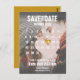 Mova o coração romântico do amor do ouro para o seu encontro especial e personalize com seus nomes e fotos para criar um único cartão de data. Você pode personalizar o plano de fundo no reverso para sua cor favorita e adicionar detalhes adicionais do evento. Projetado por Thisnotme©