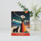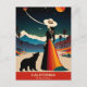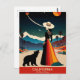 Descubra o fascínio da "Califórnia: A Terra dos Sonhos" com este viagem com cartão-postal espantoso!, Nesta cena encantadora, uma mulher com um vestido vibrante e um chapéu largo ao lado de um urso, ambas olhando para um céu noturno que respira adornado de planetas e estrelas. O pano de fundo apresenta montanhas majestosas com capas de neve e palmeiras balançando, incorporando perfeitamente a beleza diversa da Califórnia. Acima desse quadro branco, a frase "Califórnia: A Terra dos Sonhos" captura a magia e a aventura que se espera no Estado Ouro. Celebre a sua aventura com este cartão postal perfeito e mantenha viva a sua luxúria!