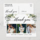 Caligrafia Moderna, Folhagem de Aquarela Elegante, Cartão de Agradecimento de Casamento com 3 Fotos inclui folhas de eucalipto, folhagem botânica verde, folhas azuladas empoeiradas e outras belas folhagens botânicas.