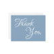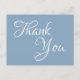 Mensagem personalizável de caligrafia branca "Obrigado!". Cartão-postal azul cinzento ou azul empoeirado e branco. Uma fonte chic para casamentos, noivas e chás de fraldas e outros eventos. Personalizar cores de fundo e fonte.