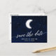 Célestial Salvar o cartão-postal de lançamento do noivado de Data. Script de caligrafia moderna. Céu azul de água com estrelas e a lua.