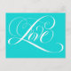 Cartão Postal Caligrafia Elegante Ama Teal Cardíaco Aqua Azul