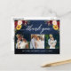 Cartão Postal Caligrafia Floral Casamento Azul Madeira Obrigado
