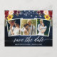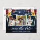 Cartão Postal Caligrafia Madeira Azul Floral Salvar Data