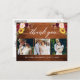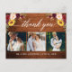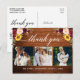 Caligrafia Moderna, Aquarela Elegante Floral Burgundy Marsala, Casamento Cartão de Agradecimento de 3 Fotos inclui rosas burgundy, rosas vermelhas, rosas rosa, girassóis e folhagens. Madeira Rústica.
