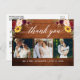 Caligrafia Moderna, Elegante Aquarela Burgundy Marsala Floral, Cartão de Agradecimento de Casamento com 3 Fotos inclui rosas burgundy, rosas vermelhas, rosas rosa, girassóis e folhagens. Madeira Rústica.