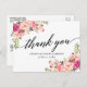 Cartão Postal Caligrafia Pink Blush Floral Casamento Obrigado