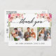 Cartão Postal Caligrafia Rosa Floral Casamento 3 Foto Obrigado