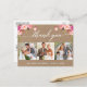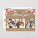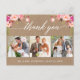 Caligrafia Moderna, Aquarela Rosa Floral, Casamento 3 Foto Agradecimento Kraft Cartão Postal