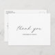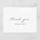 Simples casamento preto e branco Obrigado Cartão-postal com "obrigado você" em caligrafia junto com seus nomes. O backside tem seu obrigado personalizado que você envia mensagens e retorna o endereço para facilitar a correspondência. Um design minimalista com tipografia quic para um toque elegante.