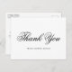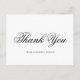 Obrigado elegante e clássico que você postcard apresentando um simples design com "obrigado você" em uma caligrafia formal negra juntamente com seu nome de empresa em uma fonte serif, sobre um fundo branco. O backside tem seu endereço de devolução junto com sua mensagem pessoal, assinatura, título e nome comercial. Um design tradicional e clássico que é excelente para qualquer profissional.