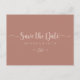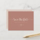 Este cartão postal de terracota com caligrafia horizontal para salvar a data é perfeito para um casamento rústico. O design simples e elegante apresenta uma tipografia clássica e sofisticada em letra cursiva.