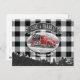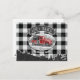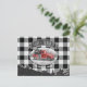 Nesta época de festas envie um postal de agradecimento a familiares e amigos para mostrar a sua apreciação. Este design apresenta uma cena de inverno de um clássico caminhão pickup vermelho a atravessar a neve com uma árvore de Natal na parte de trás, numa cena a preto e branco que lhe confere uma aparência retrô autêntica. Uma faixa acima diz "Amor e Agradecimento!" e abaixo está o nome da sua família para personalizar. O fundo é um padrão xadrez búfalo preto e branco com uma bordadura de pinheiros e uma pitada de neve. Concebido pelo mundialmente renomado © Tim Coffey.