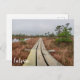 Vista panorâmica de bog com caminho de madeira, pequenas lagoas e pinheiros. Caminho de caminhada de madeira que atravessa o pântano...