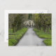 Um caminho histórico de jardim que leva a uma impressionante estrutura de fonte. Uma bela janela há muito tempo.