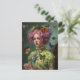 Cartão Postal Camisa verde de cabelo roxo Ivy e borboleta