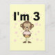 Um macaco fofo segurando um cupcake rosa e texto que diz Estou 3 no Camisetas, bodysuits, canecas, cartões, adesivos, ímãs e outras roupas e presentes de aniversário de 3 anos com tema de macaco que podem ser usados durante todo o terceiro ano!