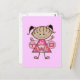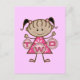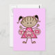 Uma adorável menina de rabo-de-porco e um vestido cor-de-rosa segura uma série de letras que soletram "DOIS" em T-shirts segundos aniversários, festas, cartas, autocolantes, bolsas e muito mais!