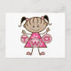 Uma adorável menina de rabo-de-porco e um vestido cor-de-rosa segura uma série de letras que soletram "DOIS" em T-shirts segundos aniversários, festas, cartas, autocolantes, bolsas e muito mais!