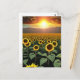 O sol de fixação lança uma matiz quente sobre a paisagem, criando uma bela cena de laranjas e amarelas. Pelo que o olho pode ver, o campo está cheio de girassóis altos e amarelos brilhantes que fluem na brisa suave. A cena é pacífica e calmante, convidando os visitantes a levar alguns momentos para admirar sua beleza. Um campo de girassol no pôr do sol é uma experiência incrível que cativa tanto jovens quanto velhos.