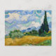 Cartão postal com uma paisagem clássica do pós-impressionismo digitalmente limpa e aprimorada por Vincent van Gogh, "Um Campo de Trigo com Ciprestes," de 1889.