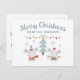 Este cartão-postal festivo de Natal apresenta um bonito tema de floresta de inverno. Uma imagem de dois ratinhos é ilustrada ao lado de uma árvore de Natal, sob luzes coloridas e flocos de neve. Uma saudação de "Feliz Natal" é impressa no topo, seguida de um nome de família de amostra. Você pode personalizar o cartão postal com seu próprio nome personalizado ou texto.