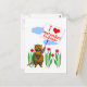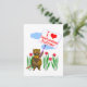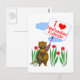 Cartão postal com minha design de um personagem de castor segurando uma placa que diz "Eu amo Terra Nova e Labrador" com um coração vermelho.