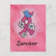 Cartão Postal Câncer de Mama Sobrevivente Laço Rosa Pássaros Flo