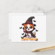bruxa-gato segurando doce com uma expressão sorridente e feliz