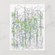 Um pomar de aspir no verão com folhas verdes desenhadas em caneta e tinta e lápis colorido.