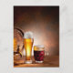 Cartão Postal Cano de cerveja com óculos de cerveja numa mesa de
