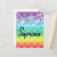 Quem não precisa de um design colorido de arco-íris soprano com luzes brilhantes? Este é super divertido com texto retrô e bolinhas grandes e gordas no fundo.