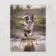 Imagem gerada por IA de um cachorro correndo em uma poça lamacenta.